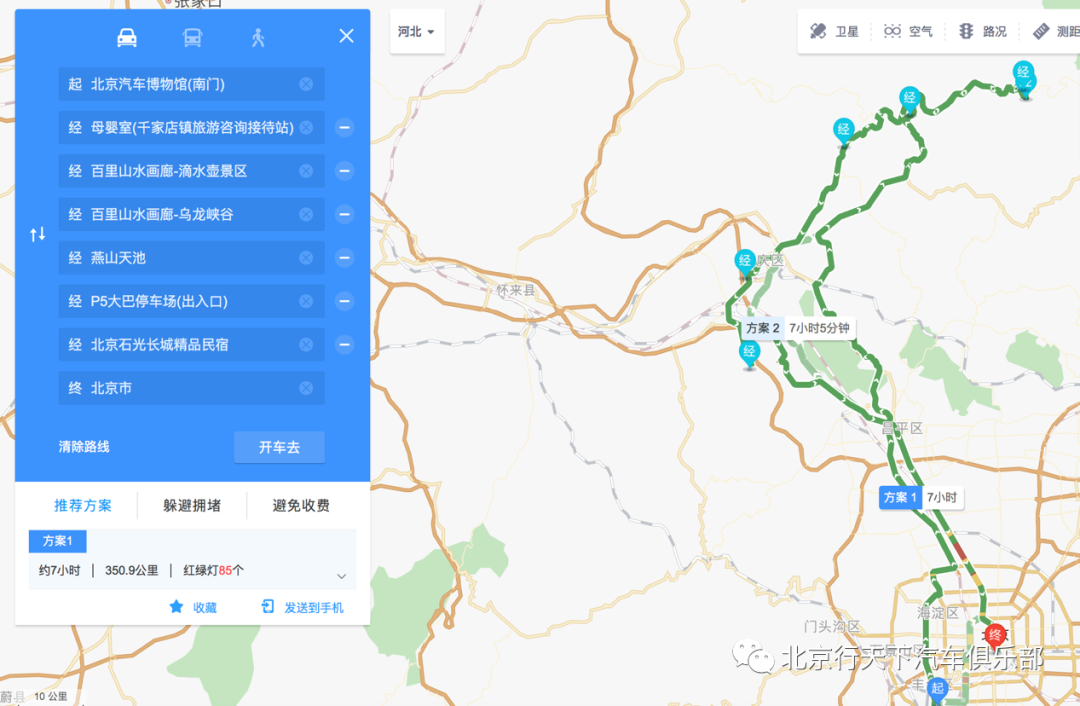暂离城市的喧嚣 穿梭在山景水映之间 山峦叠嶂 流水潺潺 绿荫环绕 村落寂静 这样的自然的拥抱 说不尽 但无限好 周末带上家人 自驾去延庆 穿梭百里山水画廊 漫步山间峡谷 傍晚游一游世园会的永宁阁 赏一赏妫汭湖的音乐喷泉 才不负这孟夏的美好 夜宿石光长城精品民宿 尽享中国传统砌筑风韵的美 晚餐再品一品难以抗拒的石烹宴 被评为非物质文化遗产的石烹猪脸 定会将你带入传统老记忆之中 如果你爱早起 那就一定要去看看石峡关的日出 朝阳下 有蓝天 翠山 历史 还有你...... 1 【百里山水画廊】 【百里山水画廊】 北京延庆百里山水画廊景区位于延庆区东北部千家店镇,属延庆生态涵养区的核心区,总面积371平方公里,距延庆城区40公里,距市区110公里。东与怀柔区毗邻,北与河北省赤城县接壤,西南、东南分别与香营、刘斌堡、珍珠泉三个乡相连。滦赤、花千、花沙公路穿镇而过自成环线,交通便利,2007年被评为北京市自驾游10条最佳线路之首。2010年9月17日,经国家旅游局和全国旅游景区质量等级评定委员会批准,成为北京市首家涵盖全镇范围,实现“镇景合一”的大型国家4A级旅游景区,现为延庆世界地质公园四大园区之一。穿越的滴水壶、乌龙峡谷、属于百里画廊,是自驾延庆的最佳线路。 2 【滴水壶景区】 【滴水壶景区】 位于北京市延庆区,距北京城区130公里,距延庆城区70公里。是由一个形式独特的湖泊和瀑布组成,是“百里山水画廊”的核心区域。气候属暖温带大陆性季风气候的半湿润区,空气负氧离子丰富,年平均气温8°C ,年均降水量477.2毫米,四季景色变幻如画,是名副其实的避暑胜地和绿色氧吧。 3 【乌龙峡谷】 【乌龙峡谷】 与滴水壶景区相距2公里,属距今14亿年前的中生代火山熔岩区,是典型的山间河流深切河谷地貌景观,大峡谷全长约5公里,河水落差约800米,峡谷谷两侧绝壁陡直、怪石林立,水声轰鸣,浪花飞溅,以青山幽谷、碧水深潭远近闻名,是避暑消夏的好去处。 4 【北京世园公园】 【北京世园公园】 2019北京世园会,让汇集世界各国的精品园艺融入天然的山水大花园中,将全面展示园艺、城市、自然与人类和谐相融。园区与周边的自然美景融为一体,成为山水大花园中的园中之园,这将是对“让园艺融入自然让自然感动心灵”这一办会理念的最佳阐释。 5 【石光长城精品民宿】 【石光长城精品民宿】 北京石光长城精品民宿坐落于延庆区八达岭长城脚下的百年古堡之畔,隐匿于高山绿林之下的生态古村之中,这里保留了原生态古村、古堡遗址的原有风貌,周围环绕着数百年的残长城。石光长城精品民宿包含10个独立院落,共三十余间客房(独立卫生间),并配套有咖啡厅(会议室、棋牌室)、活动广场、村历史博物馆等。整个民宿群设计别具一格,十处院落,风格各异,独具匠心,继承了中国传统建筑的精髓,充分利用了当地的毛石资源,一石一瓦,砌筑手艺尽显中国风韵。 6 【长城石烹宴】 【长城石烹宴】 “石烹”是一种古老的烹饪方法。将食物放在滚烫的石头上,即能保持食物的温度,也能激发出食材独特的香味。长城石烹宴”就是将石烹这一烹饪方式,更好的用于美食之中。其中石烹猪脸被评为非物质文化遗产。据说,在百年前,延庆有位贺氏婆婆,喜爱卤煮酱货,经二十余年精心调制老汤秘方,终成这一道名菜,流传至今。 石烹猪脸坐着轿子来到你的餐桌前,这个算得上美食界最隆重的上菜仪式,也是延庆特色美食中一道独特亮丽的风景线。 7 【石峡大集】 【石峡大集】 第二天如果不急着回京,上午还可以到石峡村赶个大集,找找孩童时的回忆。海棠干、手工红薯粉、黄芪山茶、土鸡蛋等都是延庆的特色山货。 活动主题 穿百里山水画廊·宿石光长城民宿·探世园会之夜·享特色石烹宴-2020“北京消费季”百车自驾游系列活动走进延庆 活动地点 北京市汽车博物馆 滴水湖景区 乌龙峡谷 世园会 石光长城精品民宿 活动成团 20车(报满为止) 自驾方式 跟团自驾,专业领队护航 参考车型 不限车型 DAY1 06.20 北京-干沟游客中心—滴水壶—乌龙峡谷—燕山天池—世园会—石光长城精品民宿(200km) 餐饮 午餐 晚餐 行程 06:50 北京汽车博物馆; 06:50 北京汽车博物馆南门停车场集合,发车贴、手台,领队宣讲注意事项; 07:20—7:50 听从领队指挥,进行统一车辆摆放; 8:00—8:30 参加“一起出发 为健康加油”北京消费季百车自驾游发车仪式; 08:30 领队准时出发; 11:30 车队到达延庆干沟游客中心分会场; 12:00 滴水湖景区午餐,午餐后参观; 13:00 游览黑河、白河交汇处的【乌龙峡谷】; 14:20 车队继续出发,一路苍松翠柏,青山绿水,沿途观赏【书剑锋】、【小昆仑】等怪石奇山,一路景观,至白河源头,欣赏水平如镜的【燕山天池】; 16:30 抵达延庆世园会,开启无人流模式的夜观【永宁阁】。您可登顶永宁阁瞰看全貌,也可以园艺小镇花海拍照打卡 ; 18:30 可体验妫汭湖音乐喷泉 ; 19:00 返回网红石光长城精品民宿住宿加品尝特色石烹宴。 住宿 石光长城精品民宿 DAY2 06.21 石光长城精品民宿-北京(120km) 餐饮 早餐 行程 睡到自然醒! 7:30-9:00 中餐厅自助早餐!早餐后自由活动; 9:30 退房后您可以前往八达岭长城/古长城,或参观长城文创,更可以去石峡大集采购山货! 住宿 无 活动报价与报名咨询 特惠价:638元/人 非会员:758元/人 儿童价:260元/人(1.2m以下,不占床位) 单房差:350