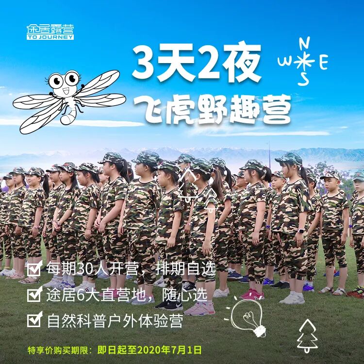 *飞虎野趣夏令营为特价产品,数量有限,报名从速喔~ *特价销售时间:即日起至2020年7月1日