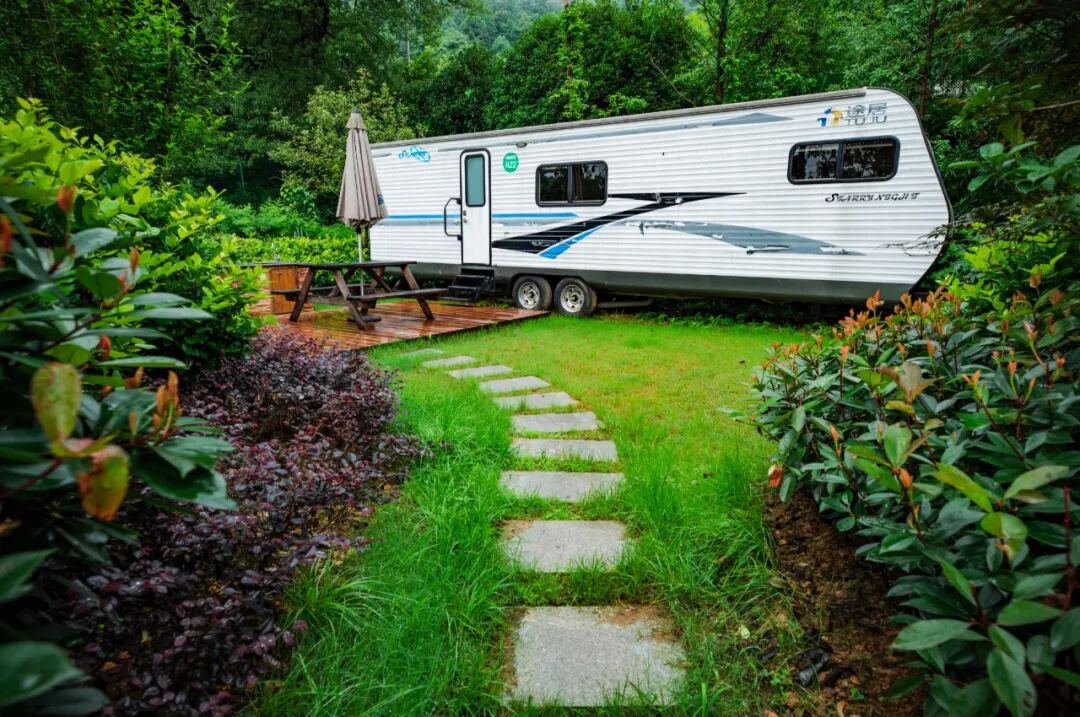 * 6米与9米的拓展式房车,独立的房车营位,绿植围合隔居,营位间距大于5米,安全不群聚,互不打扰,可充分满足不同住宿需求