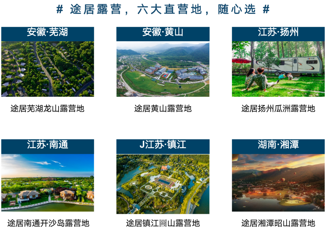 露营地位于安徽省黄山风景区西大门,风景瑰丽。以五星营地标准打造,设有房车营位、帐篷营位、迎宾阁酒店,自助烧烤、露天放映区、篝火区、射箭场、卡丁车、皮划艇、泳池、真人CS、途居农庄等配套,是国内规模与特色齐备的露营产业综合体。