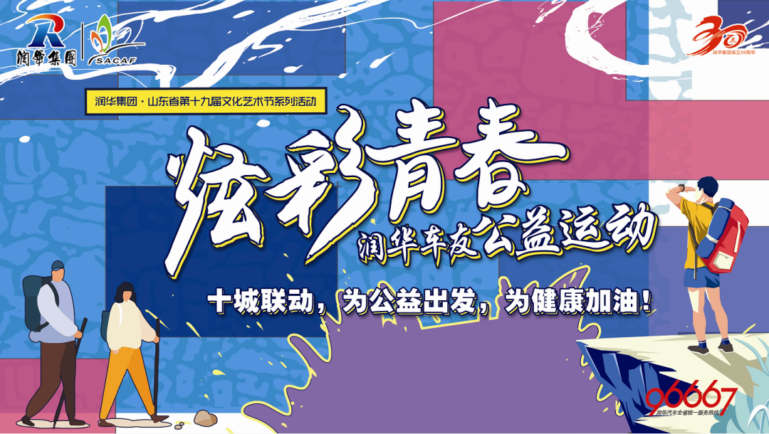润华汽车俱乐部充分贯彻山东省文化和旅游厅“六个一百”自驾游行动,依托润华汽车.山东省第十九届汽车文化艺术节发起“炫彩青春—润华车友公益运动”。润华汽车俱乐部充分发挥自身优势,联合全省十地市十个景区,组织车友开展“炫彩青春-润华车友公益运动”。