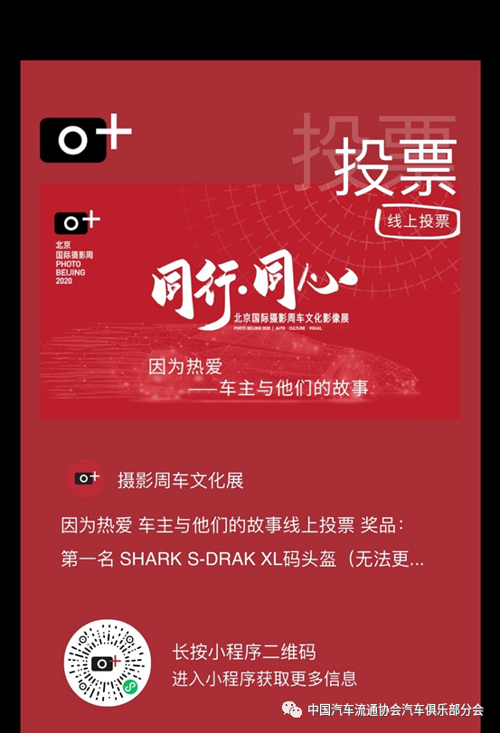 由中国汽车流通协会俱乐部分会策展的体现汽车流通领域在2020这一年共同抗疫的《2020的汽车人们》也在同期展出,同时还有《中国汽摩运动发展掠影》、《摩托人之路》、《中国车文化先行者》、《祥龙博瑞集团专区》、《羌塘高原原生态游》、《为美丽中国充电为美好生活赋能》以及专业媒体展等16个主题展,欢迎大家前来打卡、观展!