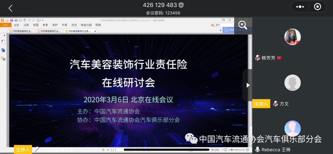 在支持汽车美容装饰企业一手抗疫情一手有序复工复产的攻坚时刻,中国汽车流通协会汽车俱乐部分会为帮助企业尽快走出困境、降低经营风险,并为广大会员企业的服务运营提供全力护航和保障,于2020年3月6日在线召开了汽车美容装饰行业责任险研讨会。