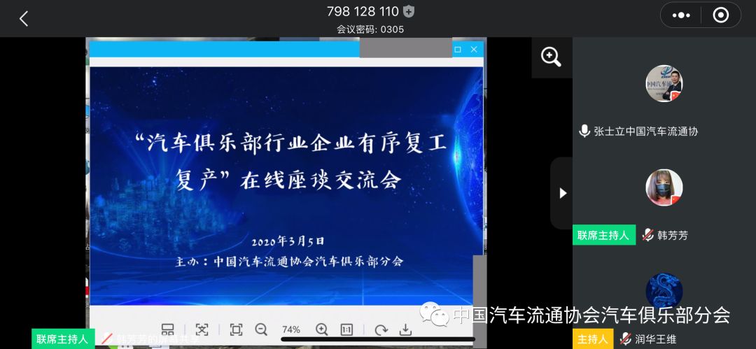 2020年3月5日,中国汽车流通协会汽车俱乐部分会采取网络在线方式召开了“促进汽车俱乐部行业内企业复工复产”座谈交流会。